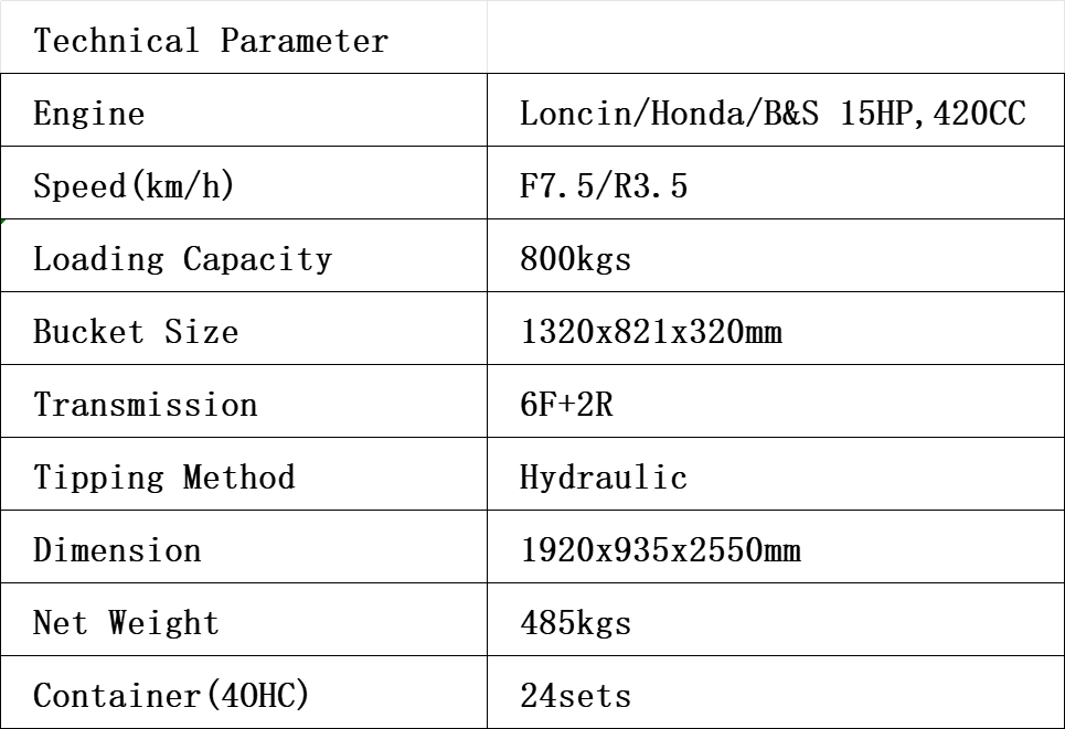 RATED LOAD 800KGS Gasoline tracked mini dumper